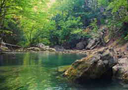 Среди пышной зелени северного склона горы Демерджи, в тенистом ущелье, находится самый мощный и полноводный водопад Челнов, который не пересыхает даже в самое засушливое лето. А выше водопада - череда ванн, искусно вымытых водой в мягком камне, наполненных прохладной ключевой водой.