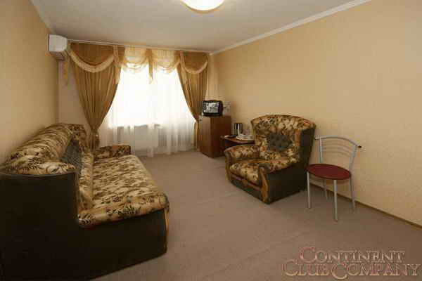2-комнатный 2-местный «Люкс/Suite» (два санузла: туалет, умывальник и ванна). Жилая площадь номера – 30 кв.м. В номере: двуспальная кровать, телевизор, холодильник, кондиционер, мини-сейф. Расположен в корпусе №1 с 5 по 12 этажи с видом на парк и море, и в корпусе № 3 корпусе на 2 и 3 этажах с видом на парк.