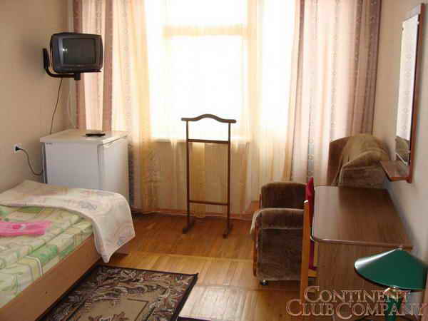 -1-комнатный 1-местный Стандарт с удобствами (совмещенный санузел с ванной). В номере: односпальная кровать, ТВ, холодильник, набор мебели, лоджия. Общая площадь - 10 м. кв.