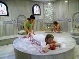 Хаммам. Оздоровительный эффект турецкой бани ничуть не меньше, чем у русской бани или финской сауны. После посещения турецкой бани улучшается настроение, появляется чувство свободы и легкости во всем теле, обретается душевное равновесие. Посещение хаммама восстанавливает здоровое дыхание, улучшает кровообращение, помогает бороться с излишним весом и бессонницей. Особенно стоит отметить пользу турецкой бани для эффективного очищения и омоложения кожи, лечения угревой сыпи.