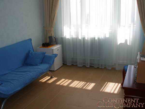 1-комнатный 1-местный номер «полулюкс»* (душ, туалет, умывальник). В номере: набор необходимой мебели, холодильник, телевизор, кондиционер, балкон;