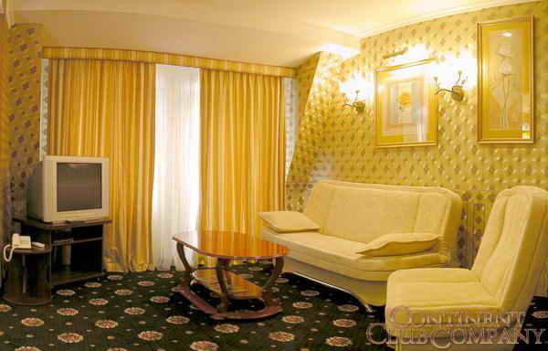 2-уровневый 3-комнатный 2-местный «апартамент VIP» «Lord», «Caliph» (туалет, умывальник, ванна-джакузи, душ, биде). Номер состоит из гостиной и спальной комнат, столовой с мини-кухней. В номере двуспальная кровать, диван, телевизор, домашний кинотеатр, холодильник, мини-бар, кондиционер, телефон, мини-сейф, микроволновая печь, два «французских» балкона. Южная сторона.
