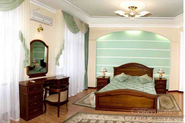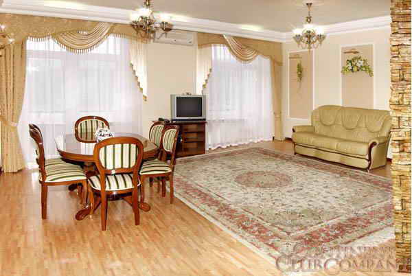 -6-комнатный 2-этажный Апартамент со всеми удобствами. В номере: 2 спальни, гостиная, кабинет, бильярдная, тренажерный зал, два санузла и мини-сауна, набор необходимой мебели, телевизор, холодильник, утюг, чайник, телефон.