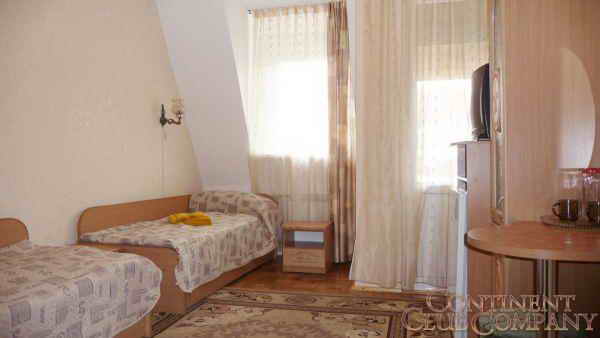 1-комнатный 2-местный «Стандарт» со всеми удобствами (туалет, умывальник, душ). В номере: 2 односпальные кровати, ТВ (кабельное), холодильник, столовая посуда, лоджия;