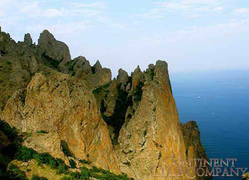 Карадаг - Черная гора - самый древний вулкан в нашей стране. Его возраст - 170-150 миллионов лет. Карадаг - это целый мир удивительных каменных пиков и горных вершин; мир зеленых дубрав и разноцветных степей; мир причудливых скалистых мысов, разделяющих бесконечные бухты и бухточки; мир бездонных ущелий и уютных долин. Причудливые фигуры изваяны в вулканических туфах ветрами, дождями и солнцем: Маяк, Шайтан, Пряничный конь, Сокол, Пирамида, Сфинкс...